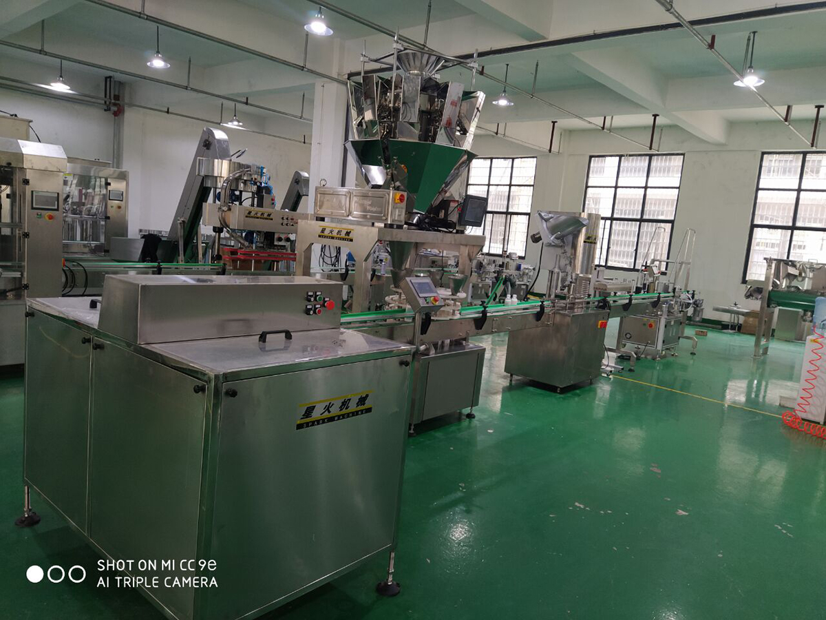 適用于中藥飲品,五谷雜糧、干果、堅果、調(diào)味料等顆粒狀物料灌裝生產(chǎn),機器可完成自動上料、定量、灌裝、旋蓋、電磁感應(yīng)封口、貼標、噴碼、裝箱等工作。常見應(yīng)用:瓶裝瓜子、開心果、花生、大米、種子、花椒、魚餌、雜糧、等顆粒粉狀物料的定量稱重包裝。