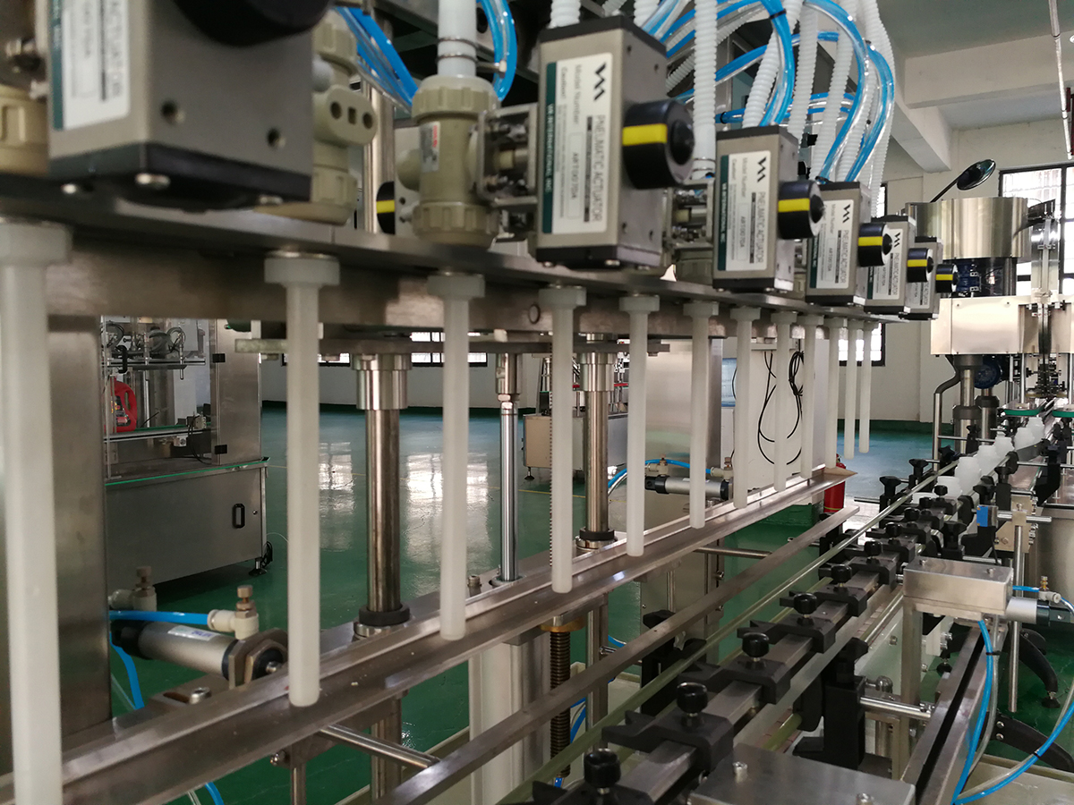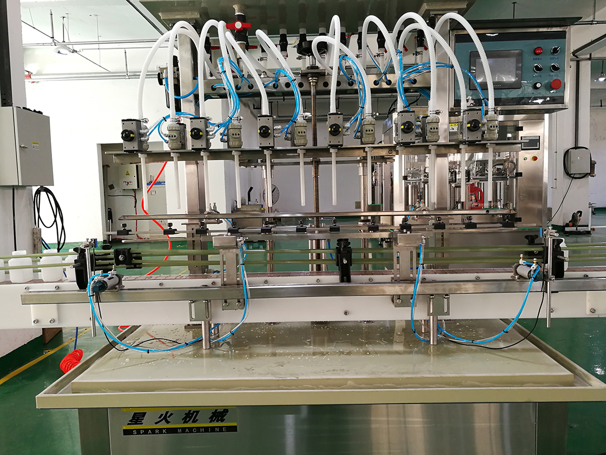 該機(jī)是一種由微電腦(PLC)可編程控制,光電傳感,氣動(dòng)執(zhí)行于一體的高新技術(shù)灌裝設(shè)備。本機(jī)專用于日化類,適用于84消毒液、潔廁劑、去污劑、鹽酸、腐蝕性化工產(chǎn)品等含有酸、堿、鹽等化工類液體的灌裝。