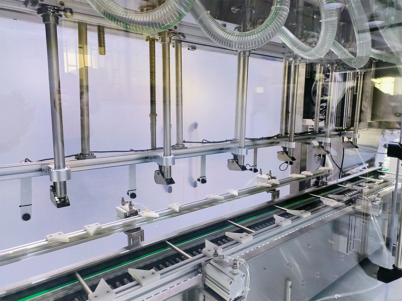 3、適配輸送系統(tǒng),采用變頻調(diào)速裝置,可適配各種化學原材料的灌裝,全封閉式的運行軌跡,可以防止物料污染,提高安全防護條件。