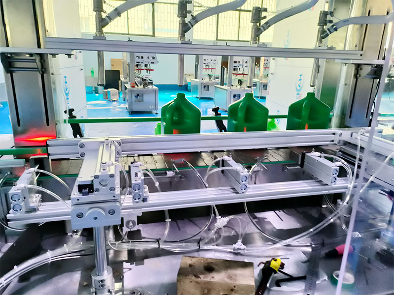 四頭化工稱重灌裝機(jī)主要針對(duì)于5-25公斤的液體物料高精度灌裝,5-25升液體灌裝機(jī)設(shè)備被廣泛用于化工、涂料、日化、食品等行業(yè),其主要核心技術(shù)在于,四頭同步灌裝技術(shù),能夠?qū)崿F(xiàn)效率與精度的雙重提升效果,內(nèi)置的PLC軟件控制系統(tǒng),可在無人化的狀態(tài)執(zhí)行灌裝運(yùn)動(dòng)提高產(chǎn)能,縮減費(fèi)用。