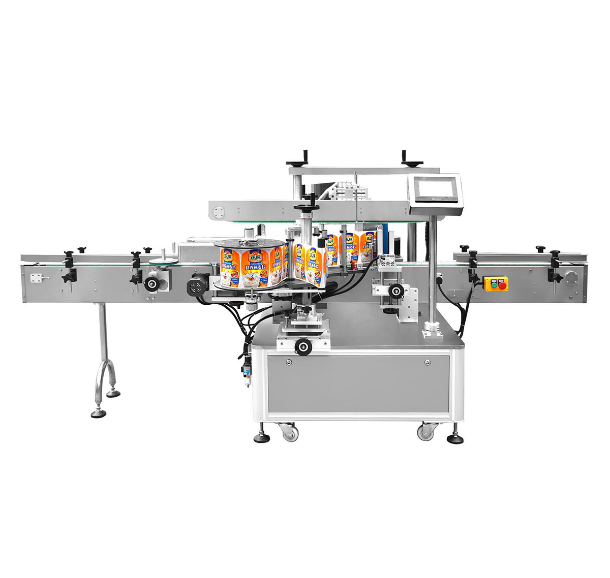采用標(biāo)準(zhǔn)PLC+觸摸屏+標(biāo)準(zhǔn)傳感器電控系統(tǒng)控制,使用方便,維護(hù)簡(jiǎn)單;具備無物不貼標(biāo),無標(biāo)自動(dòng)校正和自動(dòng)檢測(cè)功能;人機(jī)交互界面中英文注釋和完善的故障提示功能、操作教導(dǎo)功能,故障排除說明;還可選配打碼和噴碼功能