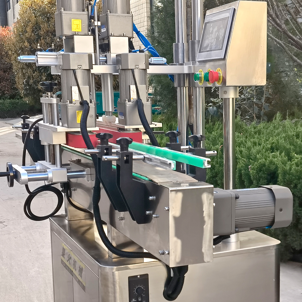 全自動夾蓋旋蓋機(jī)的工作原理是經(jīng)過PLC控制系統(tǒng)的數(shù)據(jù)優(yōu)化后,先通過自動送料系統(tǒng)將所需的蓋子送達(dá)到指定位置,然后再由夾蓋裝置對準(zhǔn)并開始進(jìn)入旋蓋工序,全自動夾蓋旋蓋機(jī)旋蓋頭會按照工作人員預(yù)設(shè)的扭矩數(shù)值旋轉(zhuǎn)蓋子,直到達(dá)到所需的密封程度。整個工作過程可根據(jù)實(shí)際情況進(jìn)行調(diào)整。