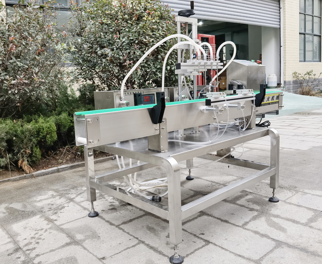3.四頭同步灌裝,產(chǎn)能提升幾倍灌裝頭配備回吸裝置,停止瞬間自動(dòng)回吸管道內(nèi)的液體,不滴漏,不污染瓶身;